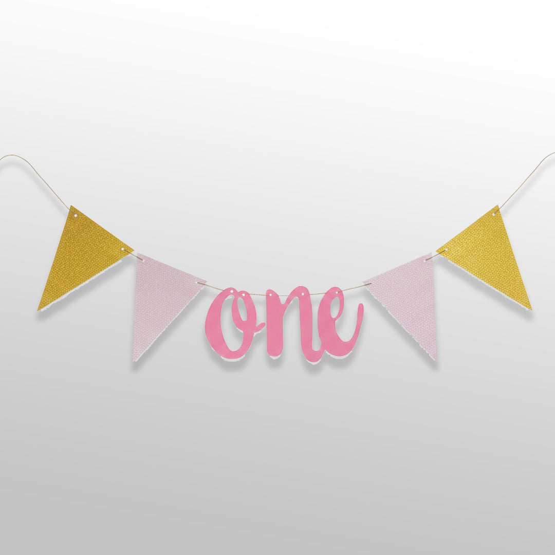 1st Birthday Pink & Golden Bunting Banner with “ONE”
