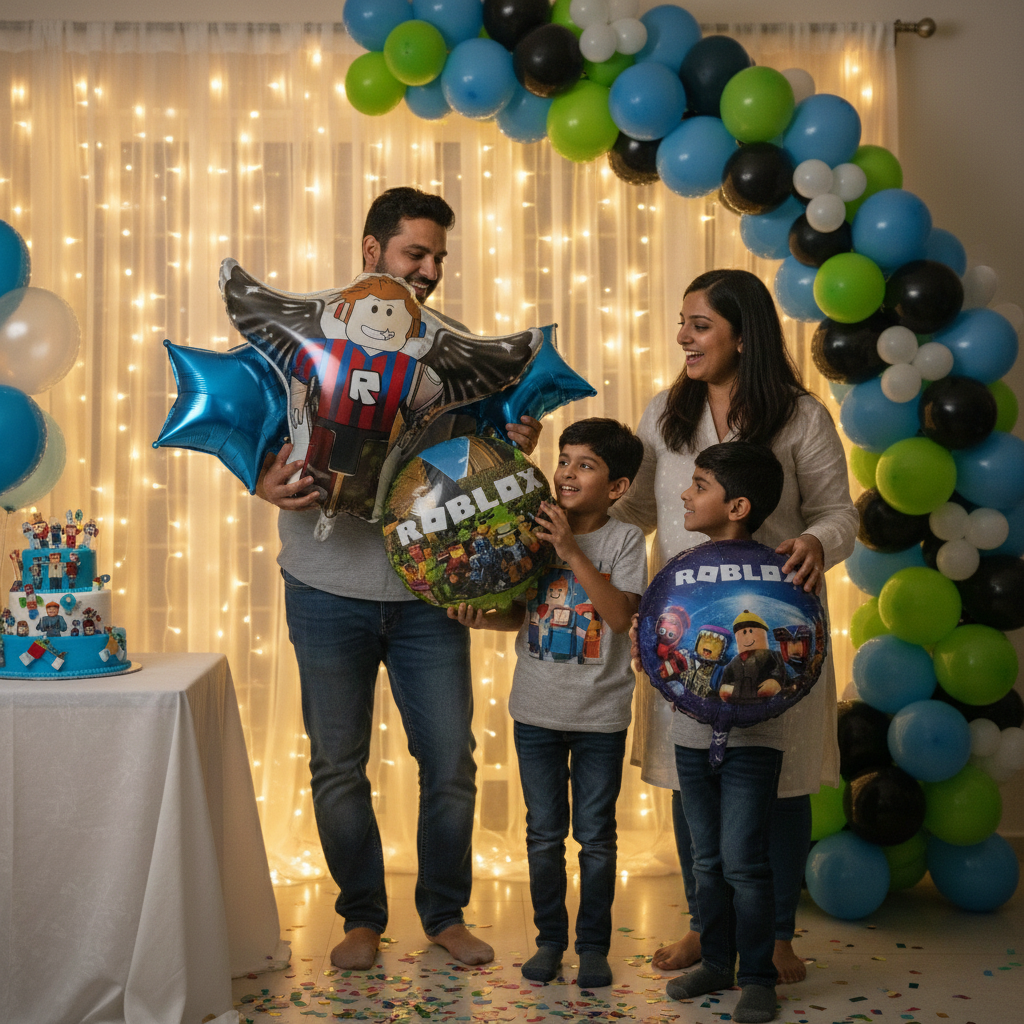 This Roblox themed foil balloon set includes five coordinated pieces designed to excite fans and gamers alike. Featuring fun visuals inspired by the popular game, the set adds energy and personality to themed birthday celebrations. The glossy finish and vibrant designs make it ideal for wall décor, backdrops, and interactive party spaces.
