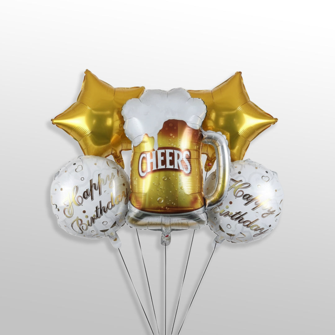 “Cheers and Beers” Themed Birthday Decoration Foil Balloons – 5 Pcs Set