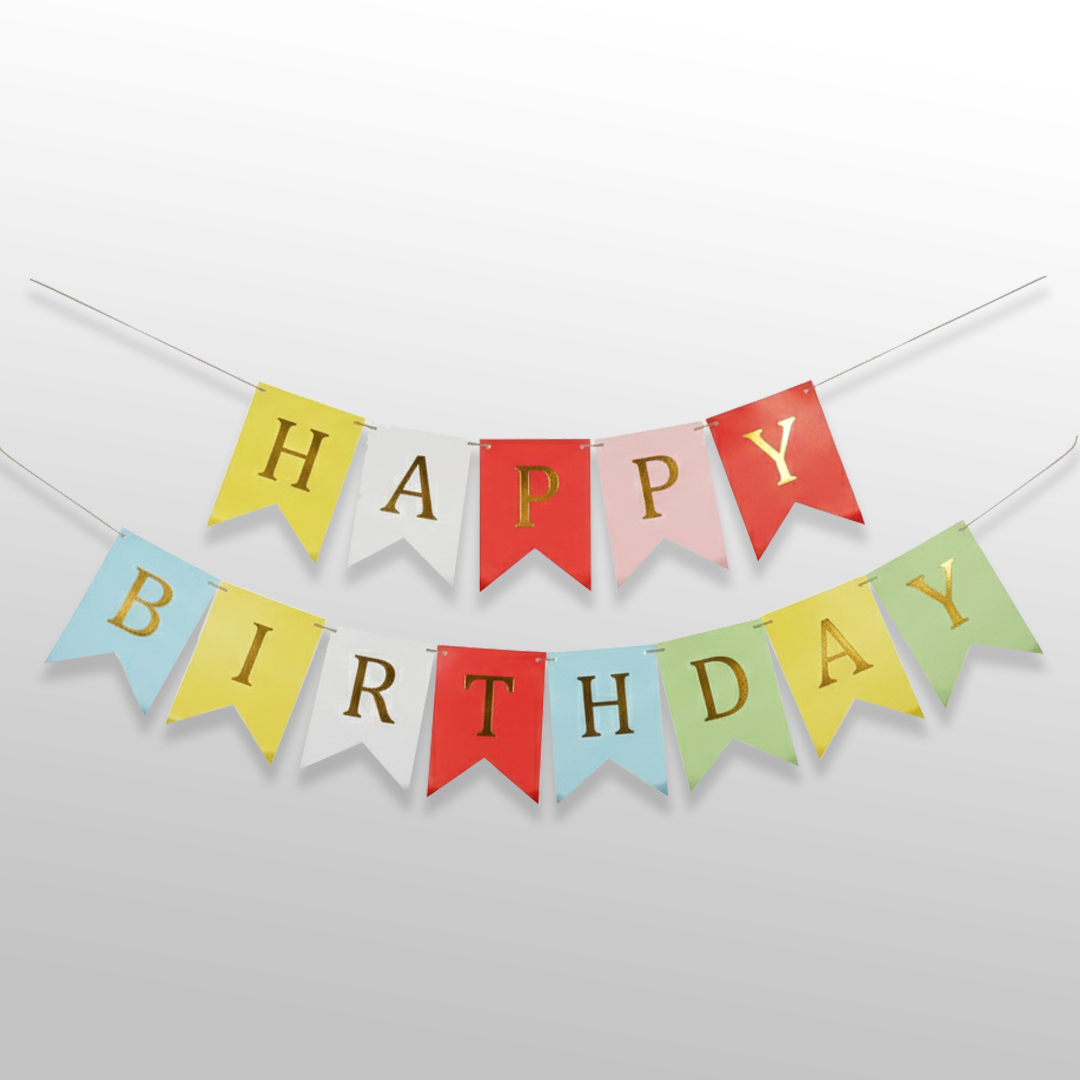 This multicolor happy birthday shiny text bunting flag banner is designed to add a bright, cheerful, and festive touch to birthday décor. Featuring vibrant multicolor flags with shiny lettering, it creates an eye-catching decoration that instantly enhances the celebration atmosphere. The glossy finish reflects light beautifully, making it ideal for wall décor, backdrop setups, and party spaces.