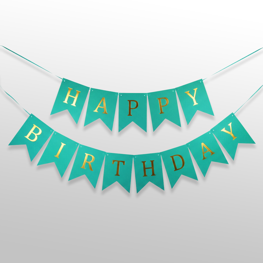 Shiny Green and Golden Happy Birthday Bunting Flag Banner