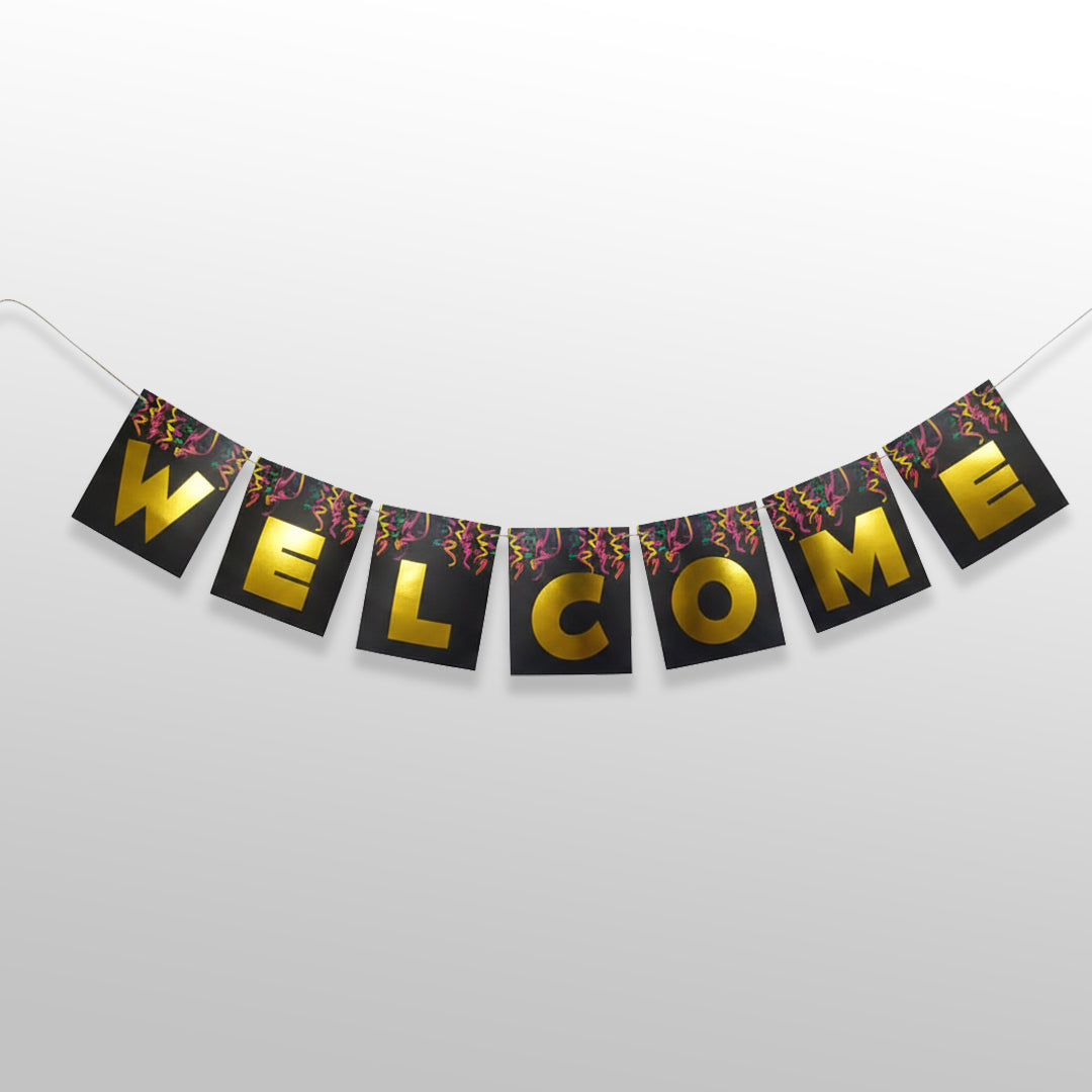 This welcome bunting flag party banner is designed to create a warm and inviting decoration for celebrations and gatherings. Featuring clear welcome text and a classic bunting design, it enhances party décor with a cheerful look. Suitable for wall décor, entrance decoration, and backdrop setups.