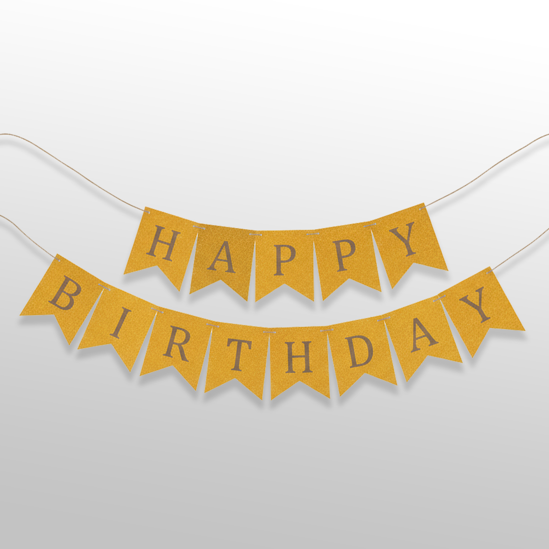 Yellow and Golden Happy Birthday Shiny Text Bunting Flag Banner